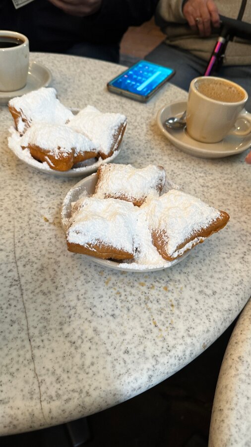 ![A few beignets for the table at Cafe du Monde in NOLA]()