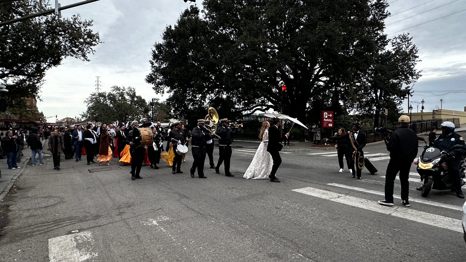 Nearing the end of the wedding march in NOLA - quite the site to see