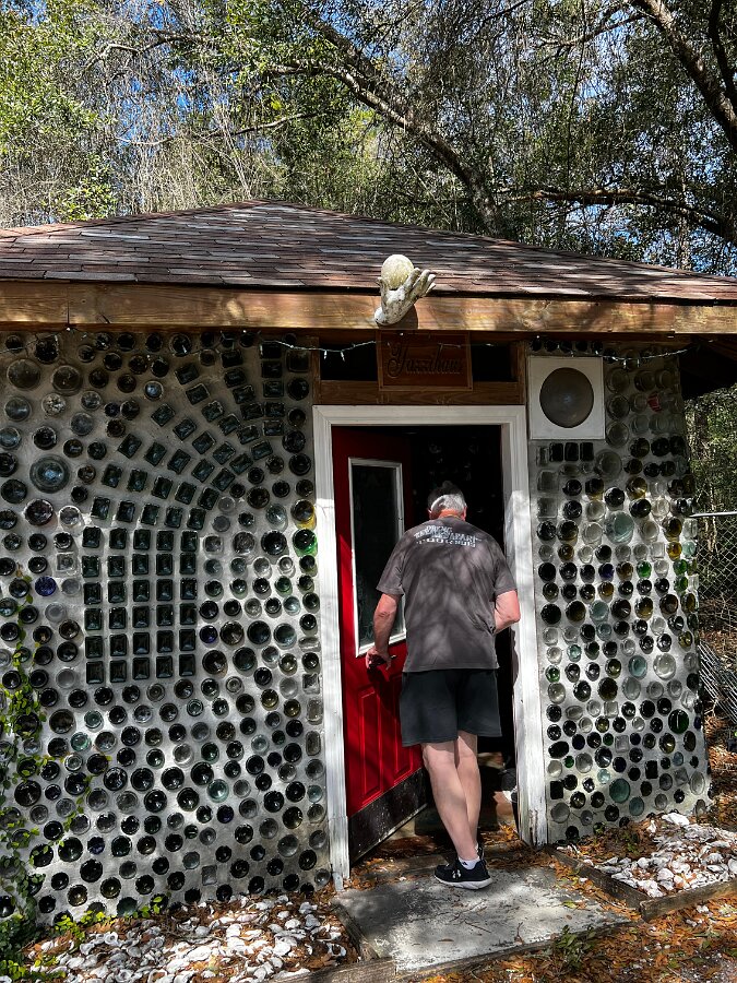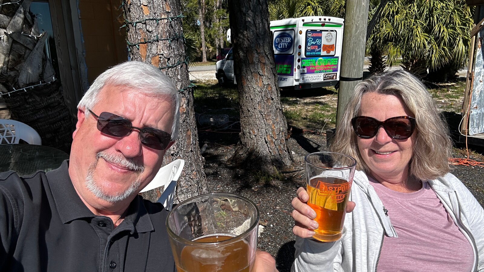 Enjoying pizza and beer at Eastpoint Beer Company in Eastpoint, FL